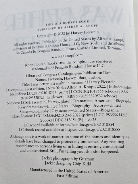 BOOK: I Was Better Last Night, A Memoir. Published by Alfred A. Knopf, 2022; 385 pgs. First Edition, hardbound with Brodart protective cover. Several illustrations. Boldly signed in black marker pen on the first free endpaper.